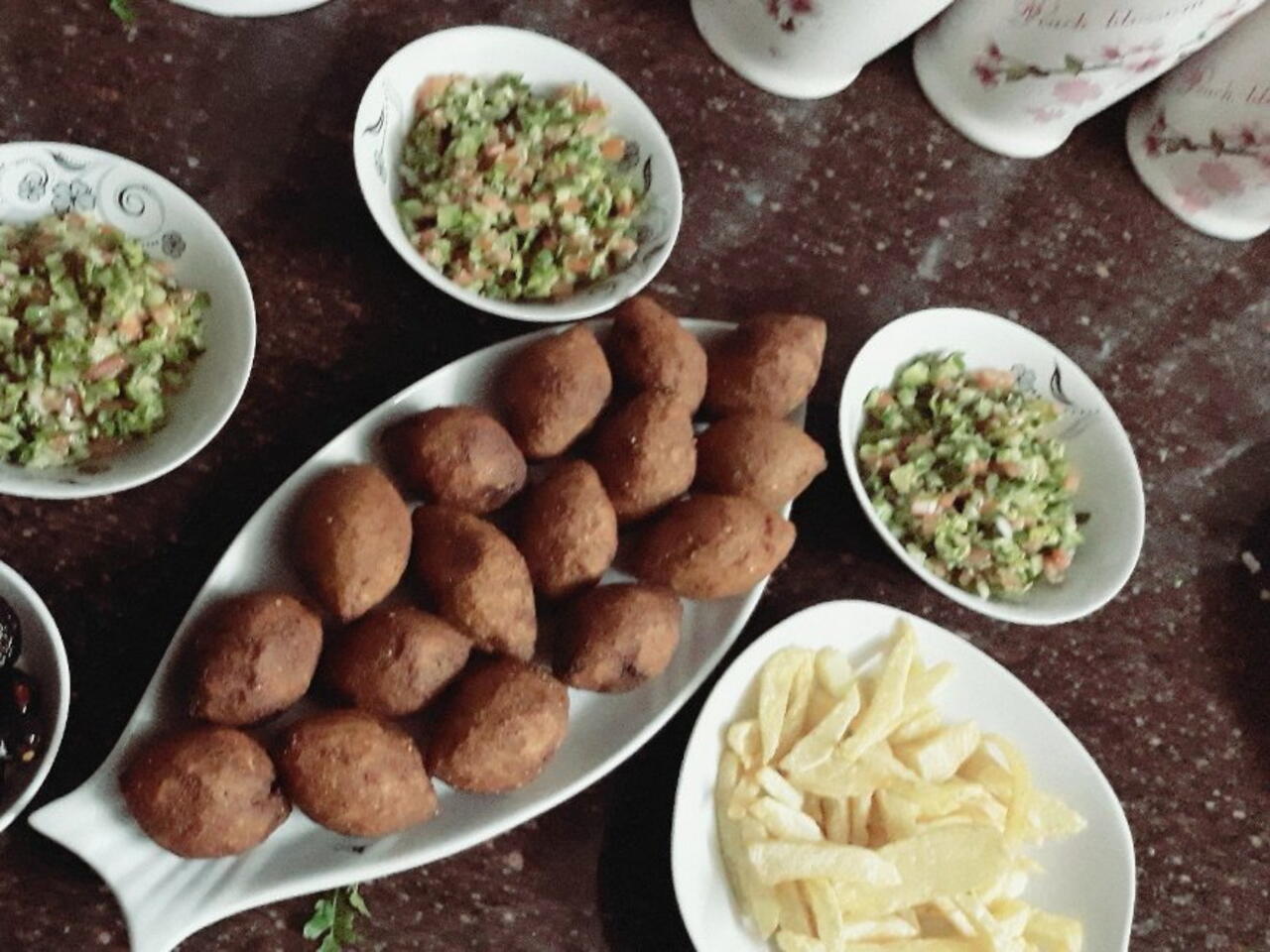 ثم نبدأ بتشكيل الكبه مع اللحمه ... ونتركها ترتاح ومن ثم نقليها في زيت ساخن