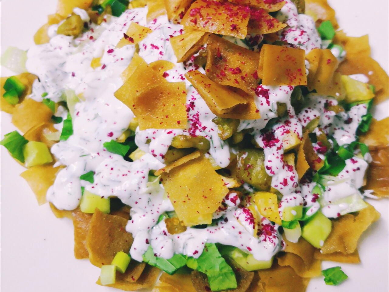 يوضع في طبق التقديم الخبز وعلية الخضار ويرش بالصوص ثم يوضع البطاطس ويرش بالصوص ثم يوضع الباذنجان ويرش بالصوص ثم يوضع الخبز ويرش بالسماق ويقدن