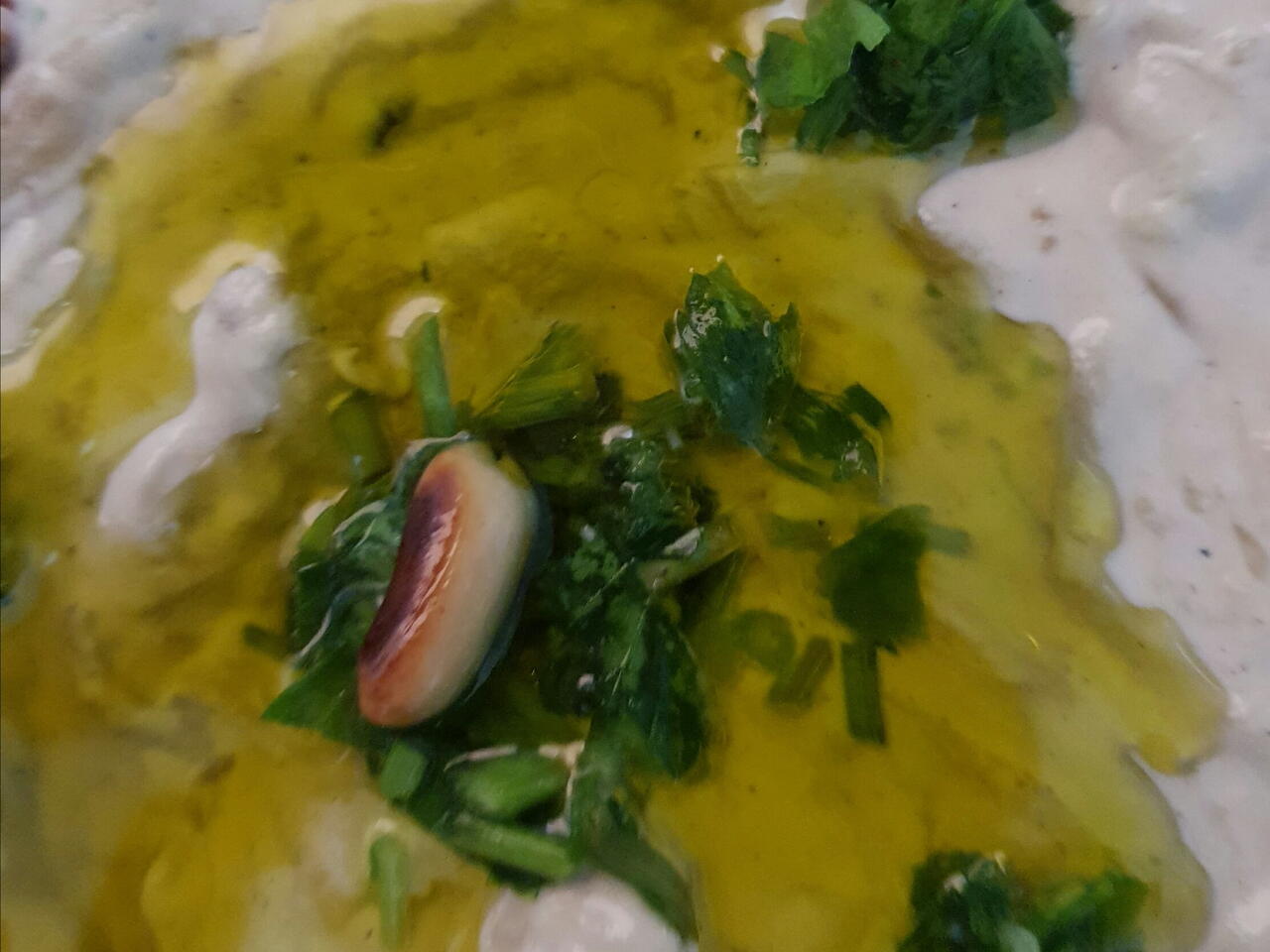 بنشوي البتنجان وبنقشرو معلقتين زبادي 4 معلاق طحينية ثوم ملح ليمون وزيت زيتون