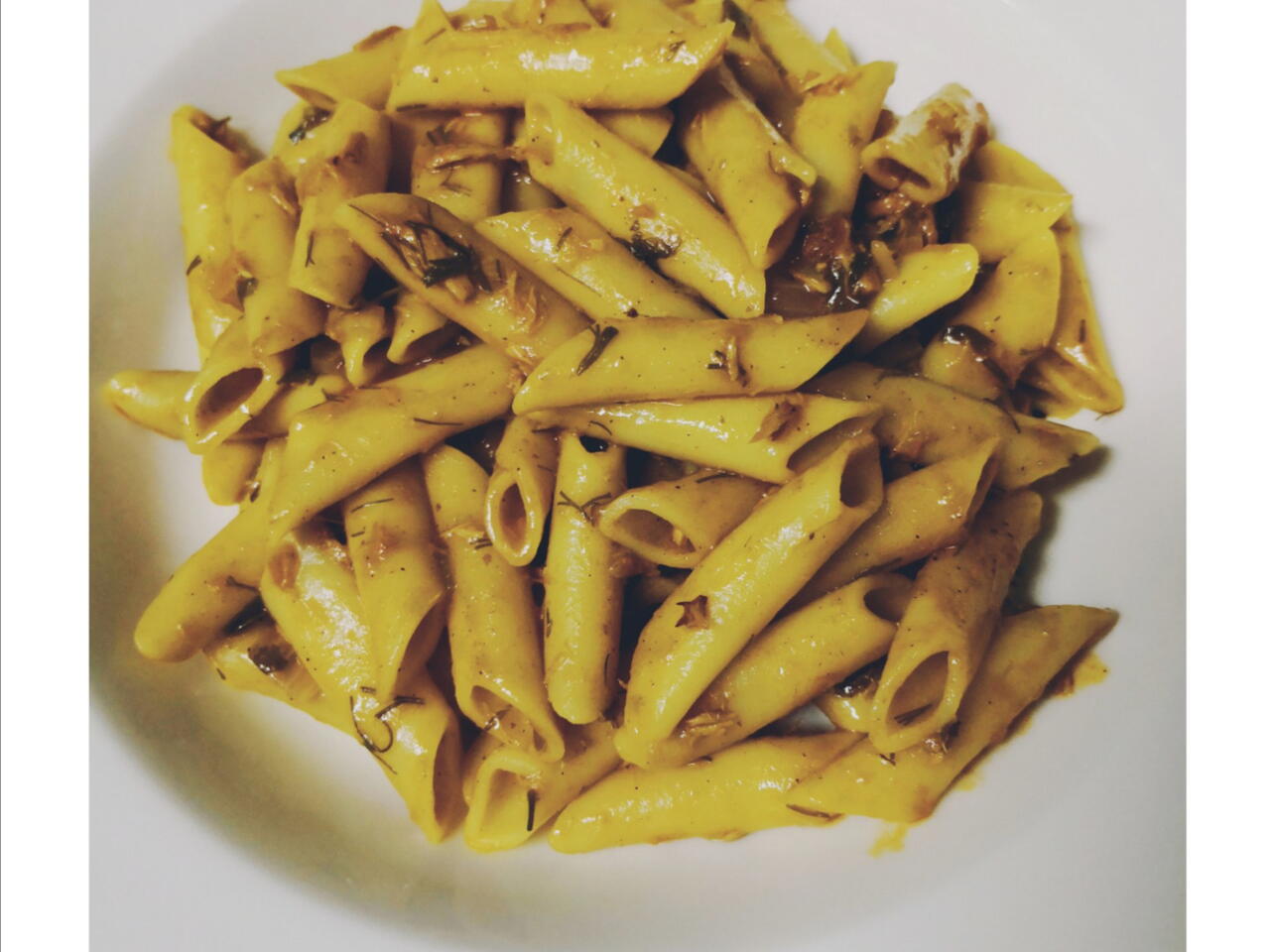يوضع التونة والثوم ويقلب حتى يطلع راءحتها