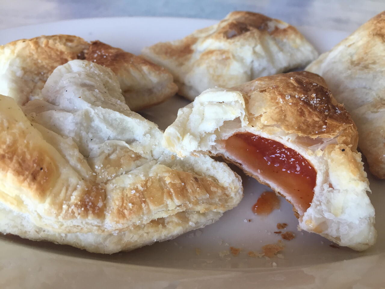 Cortamos a la mitad cada tapita de empanadas. En el medio de cada una ponemos un cuadradito de membrillo, juntamos las puntas de la tapita y la cerramos. Precalentamos la sartén tapada, la lubricamos con aceite en spray y colocamos los triángulos. En 15’ a disfrutar!!