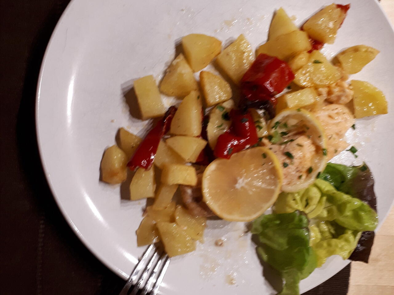 Mische die Kartoffeln und den Paprika mit den gewürzen