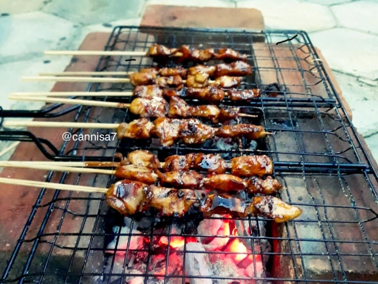 Pour the half-cooked satay with soysauce and sliced union and regrill them until they are finely cooked