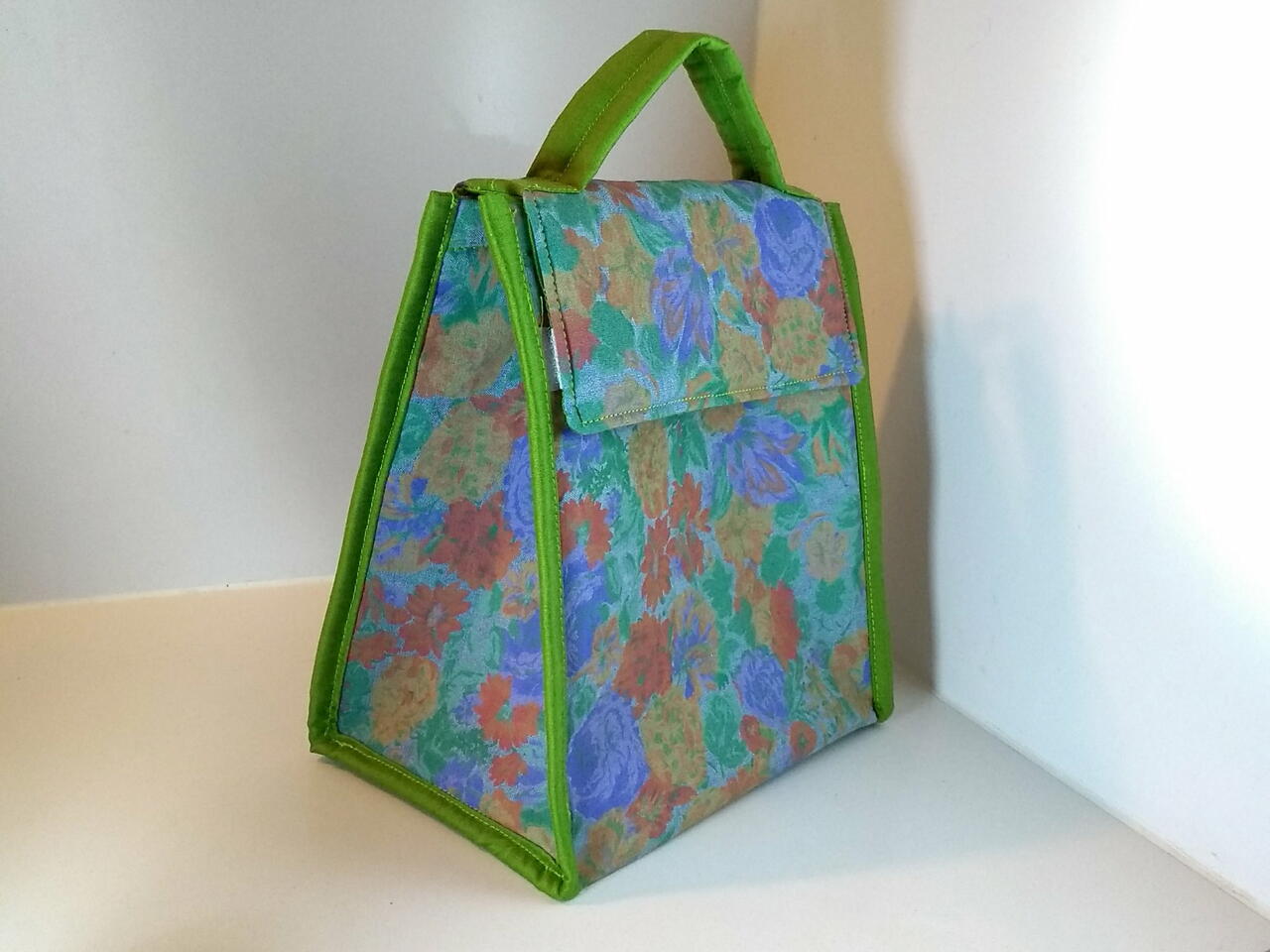 I wanted to make a lunch bag with a cute fabric and this is the best pattern that I could find. Easy to make and closes perfectly with velcro