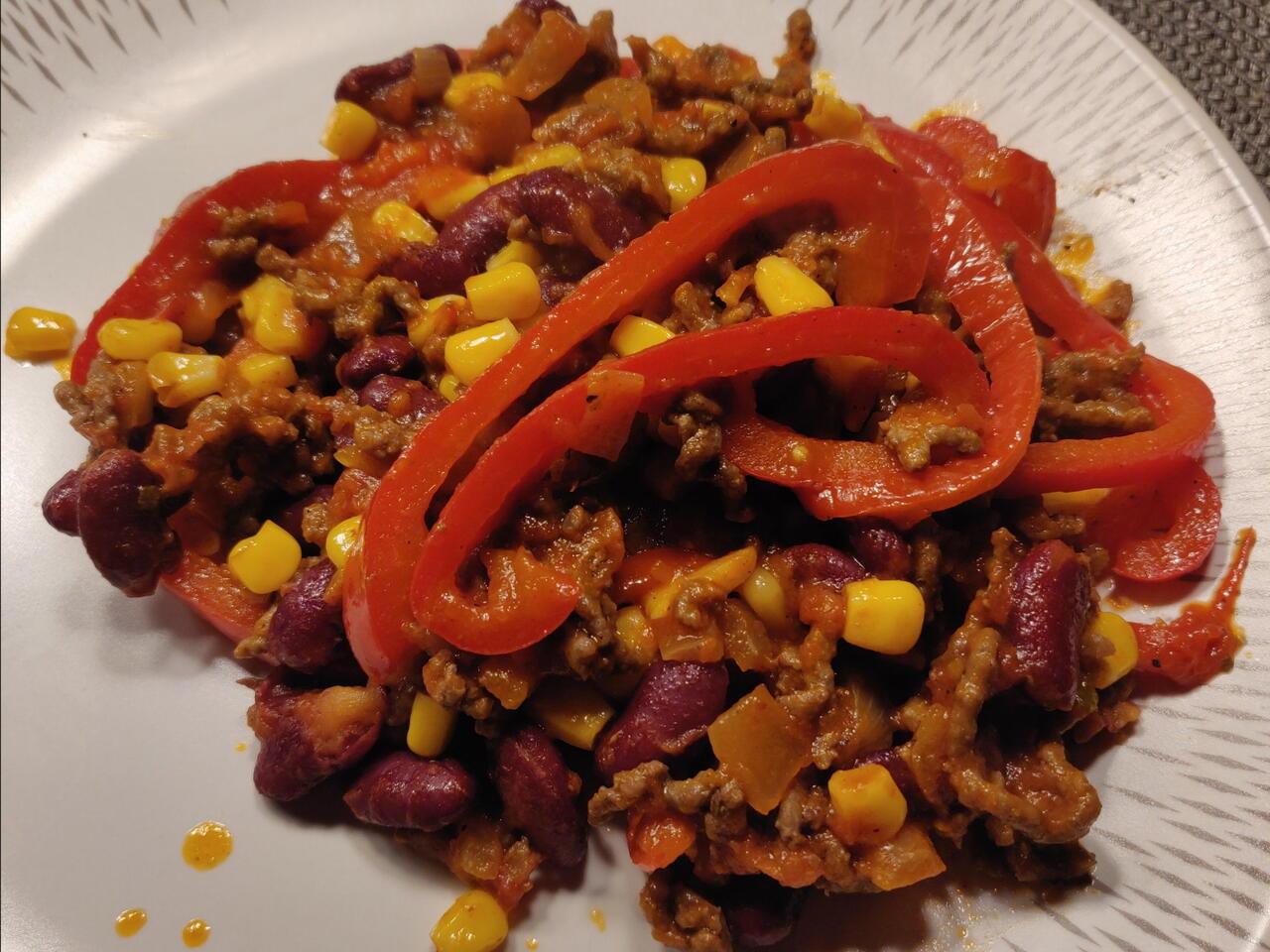 Voeg er ten slotte de uitgelekte bonen en maïs aan toe.