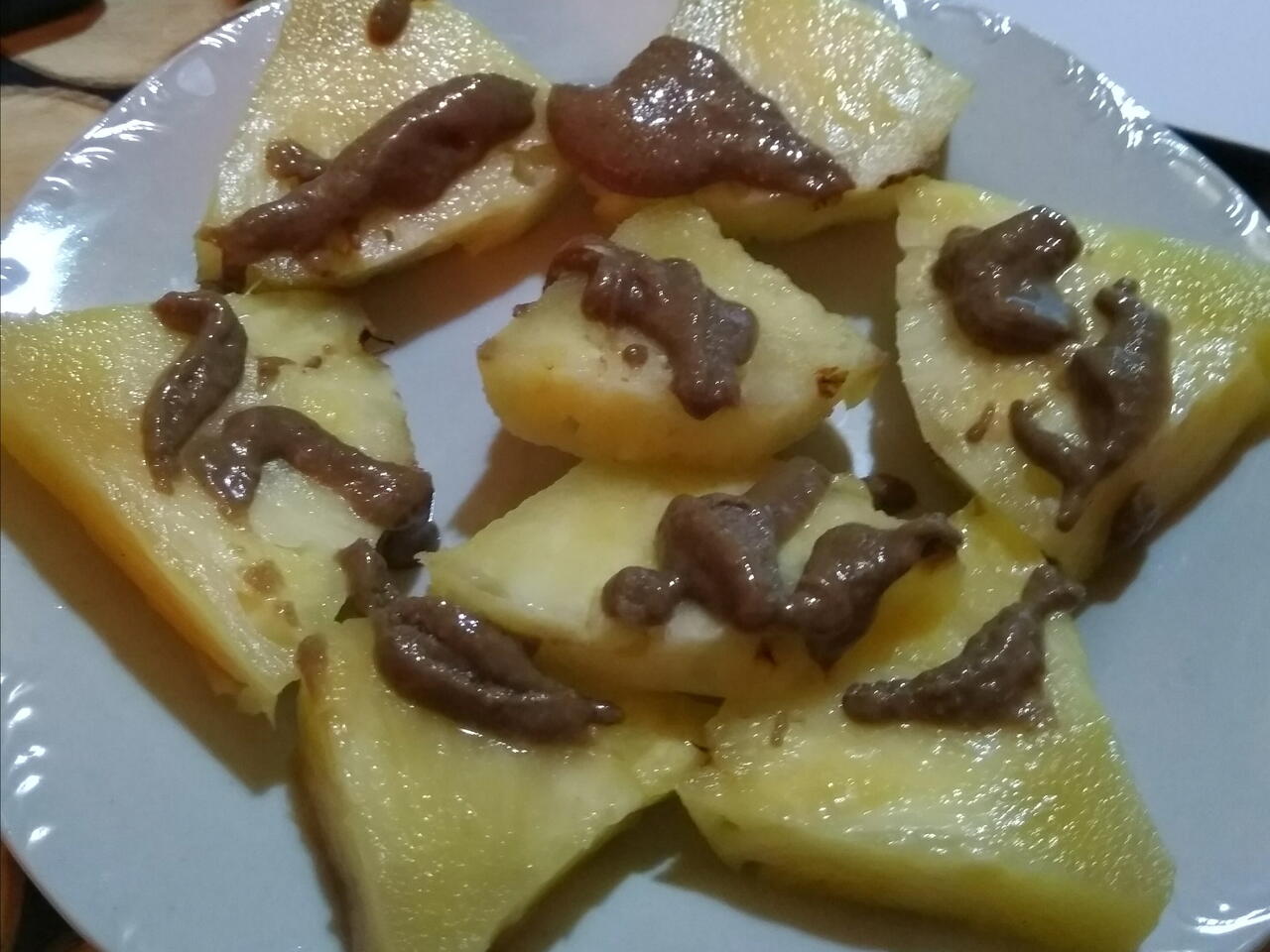 Ананас се нарязва на триъгълници и се поръсва с тахан.
