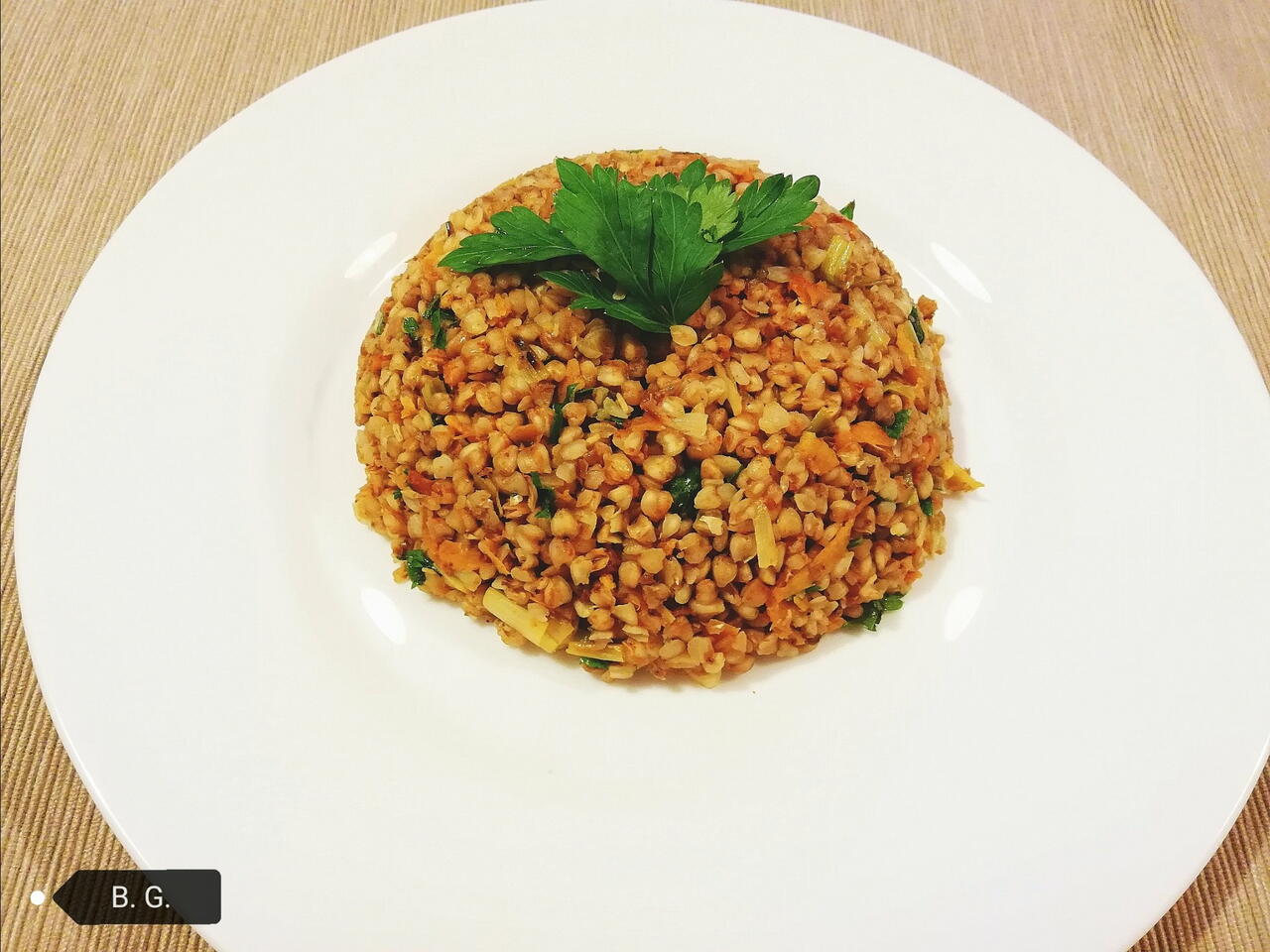 Настърганият морков и нарязания лук се запържват. Добавят се и гъбите до готовност. Към тях се прибавя и сварената елда. Разбърква се и се слагат подправките. Може да се сложи в купичка, която да изсипете в чиния за по-ефектна презентация, добавете и малко соев сос. В последния път, когато я правих добавих също при зеленчуците златна едра стафида и тиквени семки вместо гъби. Да Ви е сладко! 🍸