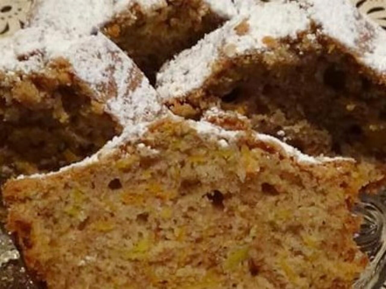 Разбивам яйцата и захарта....Добавям олиото като разбърквам....брашното....бакпулвера...канелата....коричките ...и накрая настърганата тиква...Слагам във формата и пека на 180 градуса Поръсвам с пудра захар