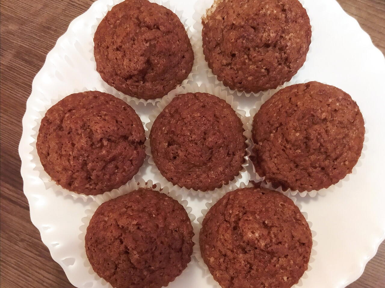 Разбива се яйцето със захарта и олиото. Смесват се сухите съставки и се пресяват, постепенно се добавят към яйчена та смес, като не се спира да се бърка-накрая се добавя тиквата. Формите се пълнят до 2/3 от обема. Пече се на 180 градуса на загрята фурна 20- 25 мин
