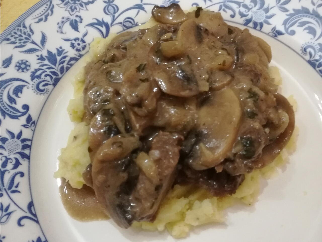По желание може да сервирате върху картофено пюре или просто сварени и намачкани картофи. Изглежда дълга рецепта ,но за един час ,от който 45 Мин не правите нищо е повече от вкусно!