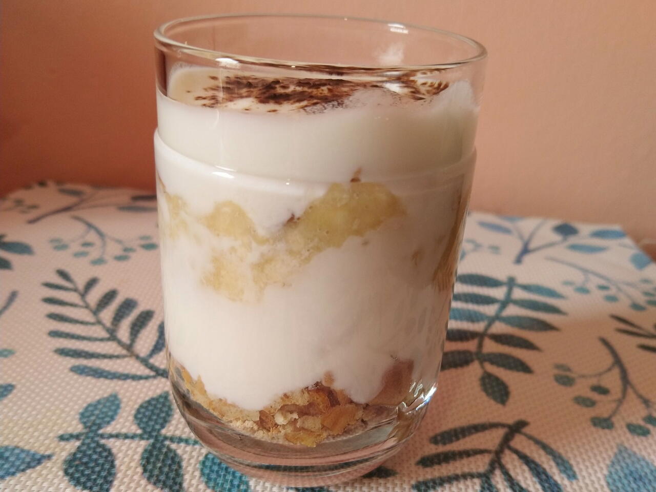 В стъклена чаша редим по ред.Бисквити-мляко-банан-фурми-бисквити-мляко-банан-мляко-щипка Рожков ❤️Накрая всичко се разбърква и бон апети 😋