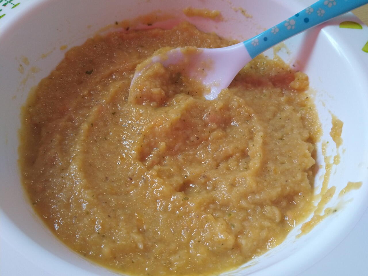 В малка касеролка варим на кубчета батат🍠,моркови🥕 и лук🌰 до готовност.