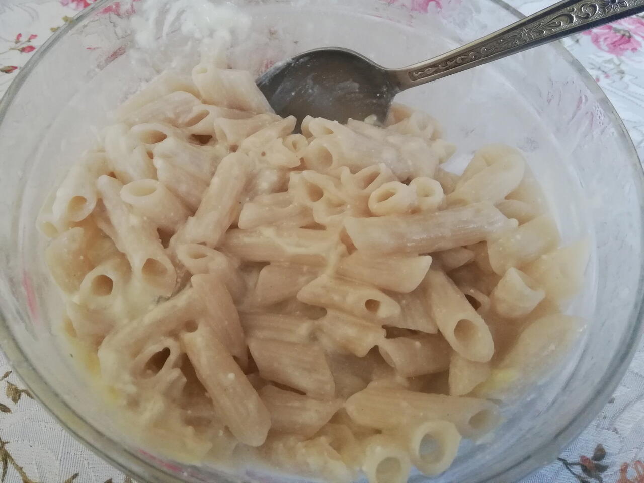 След като пастата е готова ,сложете сместа от кашкавала и изварата в нея . Разбъркайте добре и това е . Получава се нещо тежко ,но приятно за ядене . Лесен начин да вмъкнем нещо здравословно като изварата в живота си ;)