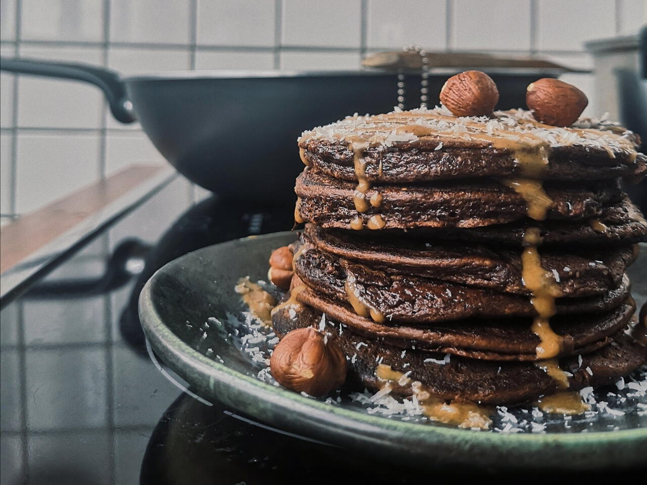 Намачквате банана с вилица. Добавяте останалите съставки и разбърквате хубаво на ръка или с пасатор/в блендер. Оставяте тигана да се загрее на слаб огън и го намазвате с малко мазнина, за да не залепнат (за предпочитане с кокосово масло). Сипвате от сместа, като вие избирате колко да са големи и колко да сипете. Когато се появят балончета отгоре се обръщат.
