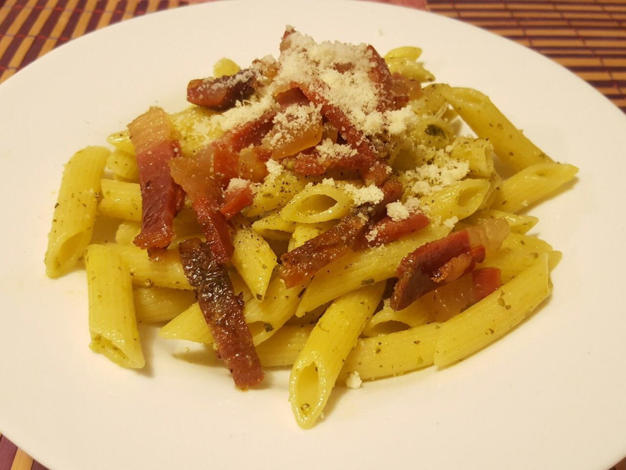 Сипете готовото пене в чинии, сложете парченцата прошуто отгоре и накрая поръсете с пармезан. (Сол и пипер на вкус). И това е! :)