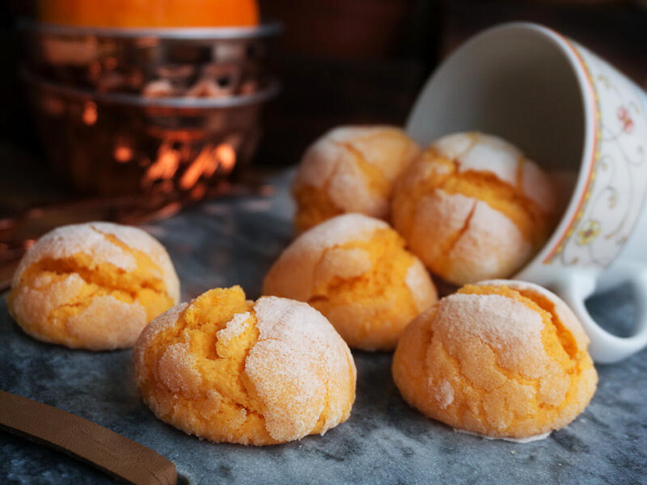 След като тестото ни се е охладило загряваме фурната на 180 °C.От добре охладеното тесто правим топчета по 20 гр. всяко.Всяко топче овалваме първо в кристалната захар, а след това и в пудрата.Нареждаме готовите сладки на разстояние една от друга в тавички застлани с хартия за печене.Печем за около 12-14 минути.Охлаждаме готовите бисквити върху метална решетка.След като се охладят напълно можем да ги приберем в херметически затворен съд и да ги съхраняваме така до 2 месеца, но едва ли