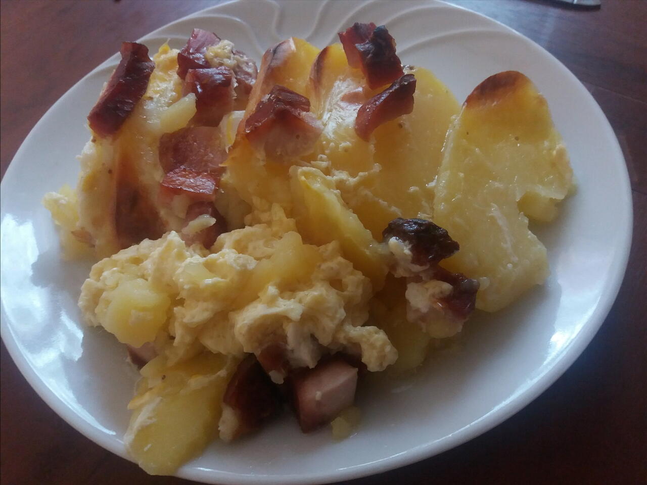 Когато са готови, залейте със смес от 2 яйца, подправки и мляко и върнете във фурната до готовност.