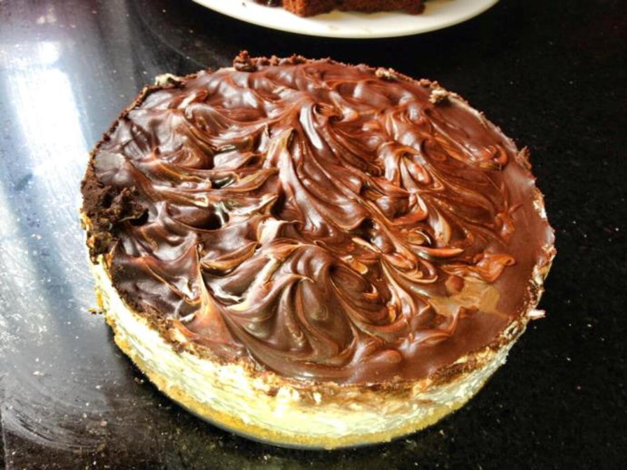 Бисквитите (250 г) се натрошават в блендер, докато станат на дребни трохи. Смесват се с разтопеното масло (125 г) и водата (3 с.л.). Съставките се месят до получаването на гладко тесто. То се разточва на кора в подходяща форма, така че да покрие дъното на форма за торта с подвижен ринг. На дъното на формата се поставя хартия за печене и се разполага бисквитената кора. Изпича се при 180 градуса за 20 минути. Изважда се от фурната и се оставя да се охлади