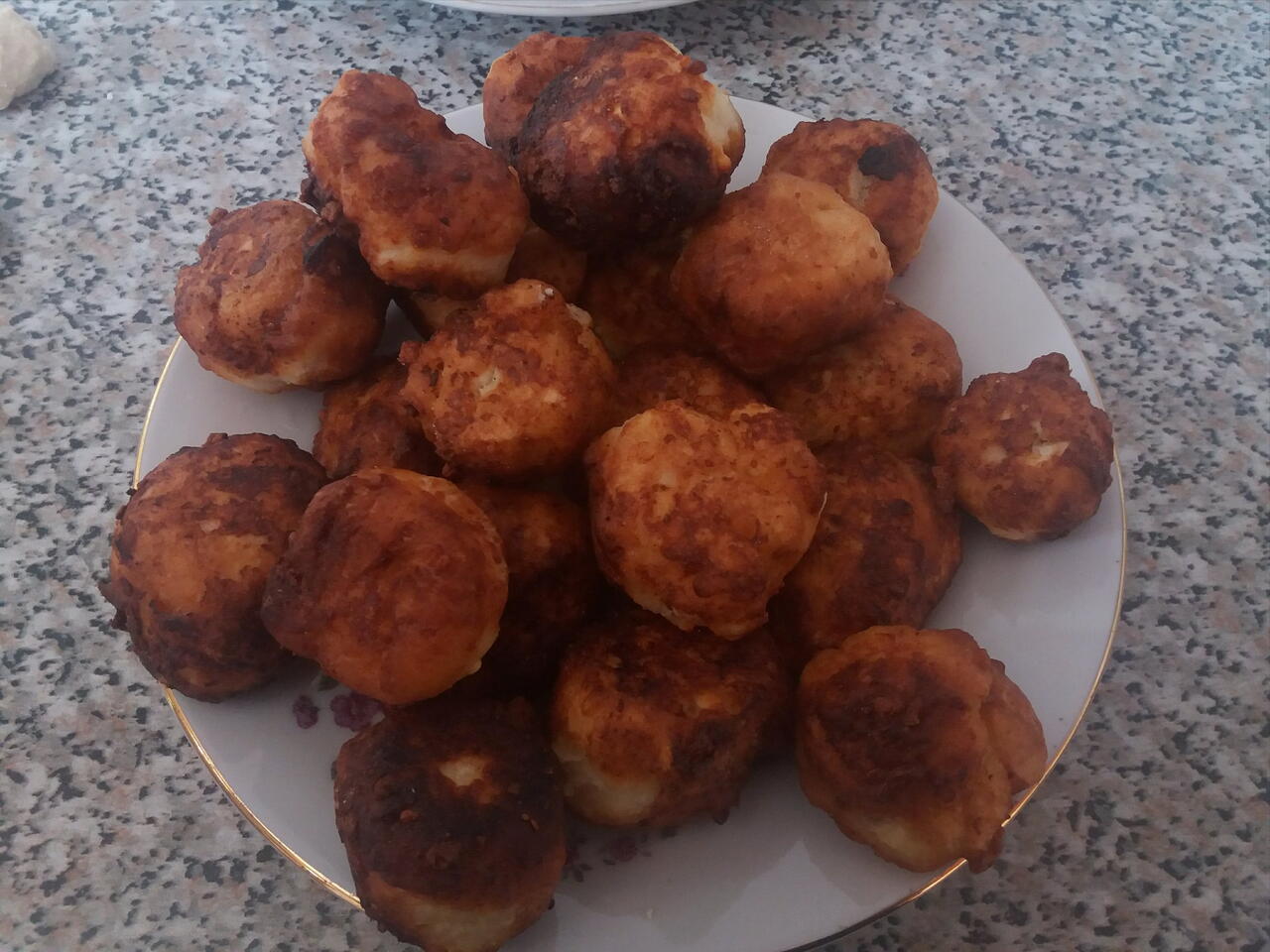 Потопету късчето в сиренето и го премесете за да стане на топче.