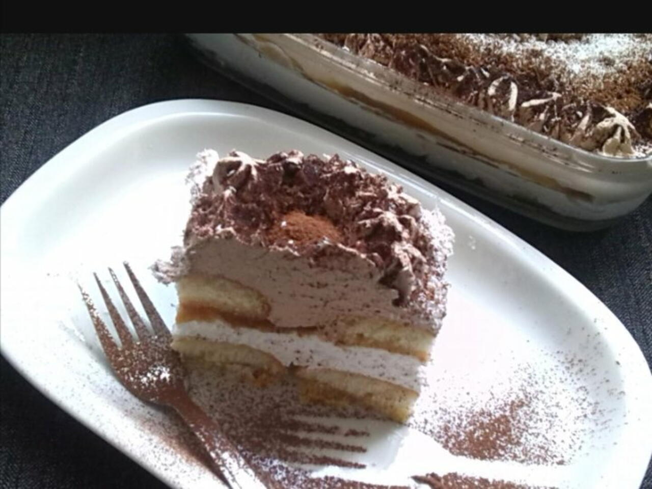 В съд/ моя стъклен 27/27 см. наредете бишкоти, които топваме за кратко в портокалов сок едно по едно. Намазваме с предварително разбитата сметана, желираното сладко и редим втори ред. Отгоре намазваме със сметана с пош украсяваме, поръсваме с кокосови стърготини и какао. Поставяме за час в хладилника да почине..но най е вкусен на другия ден
