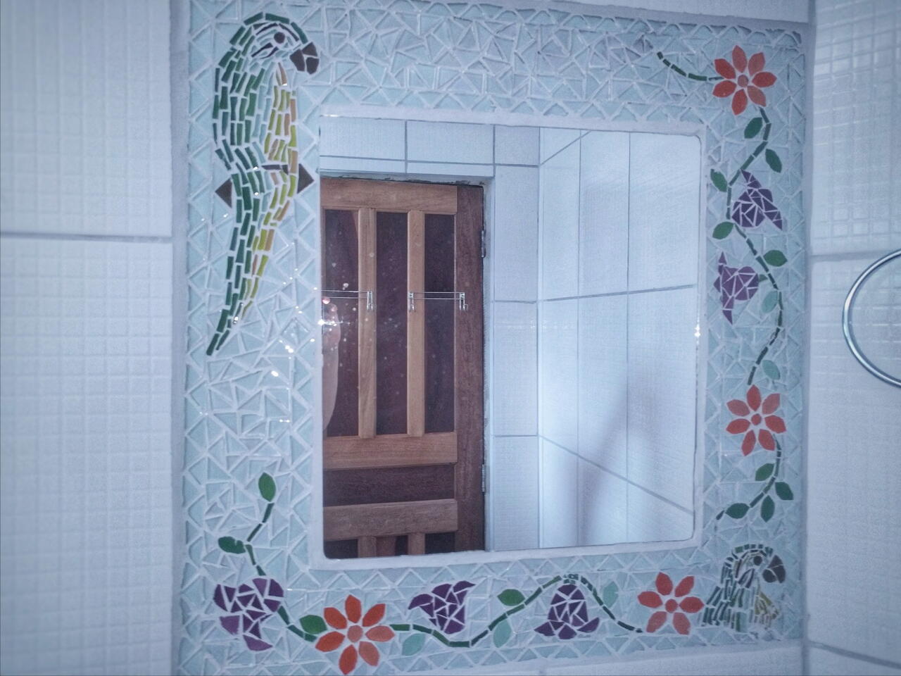Recorte as pastilha, em triângulos depois vai encaixando sobre o desenho