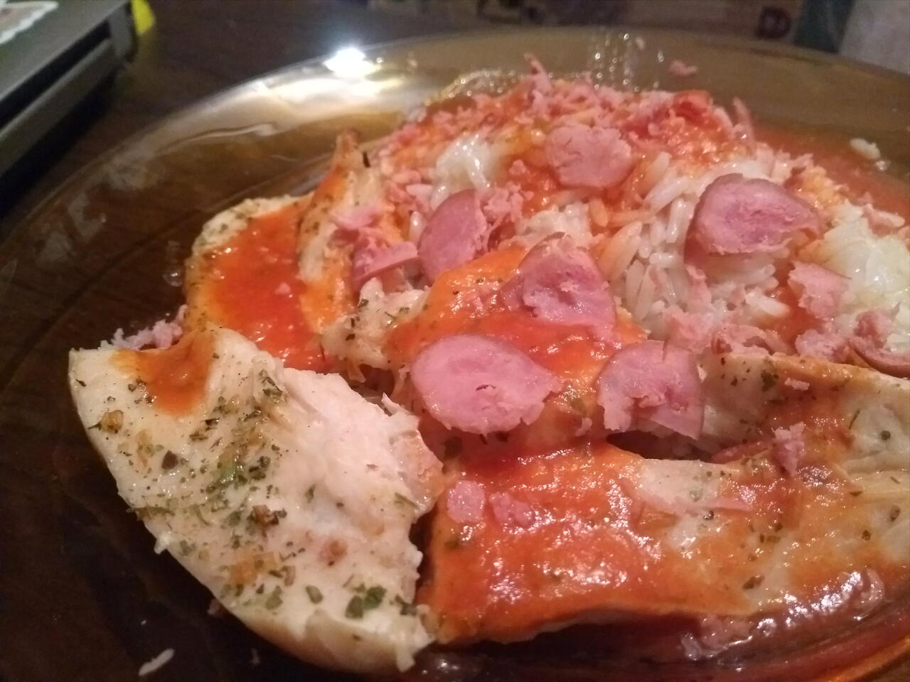 Ao terminar, junte cada um no seu prato, ralé a linguicinha calabresa por cima e bom apetite. 💙