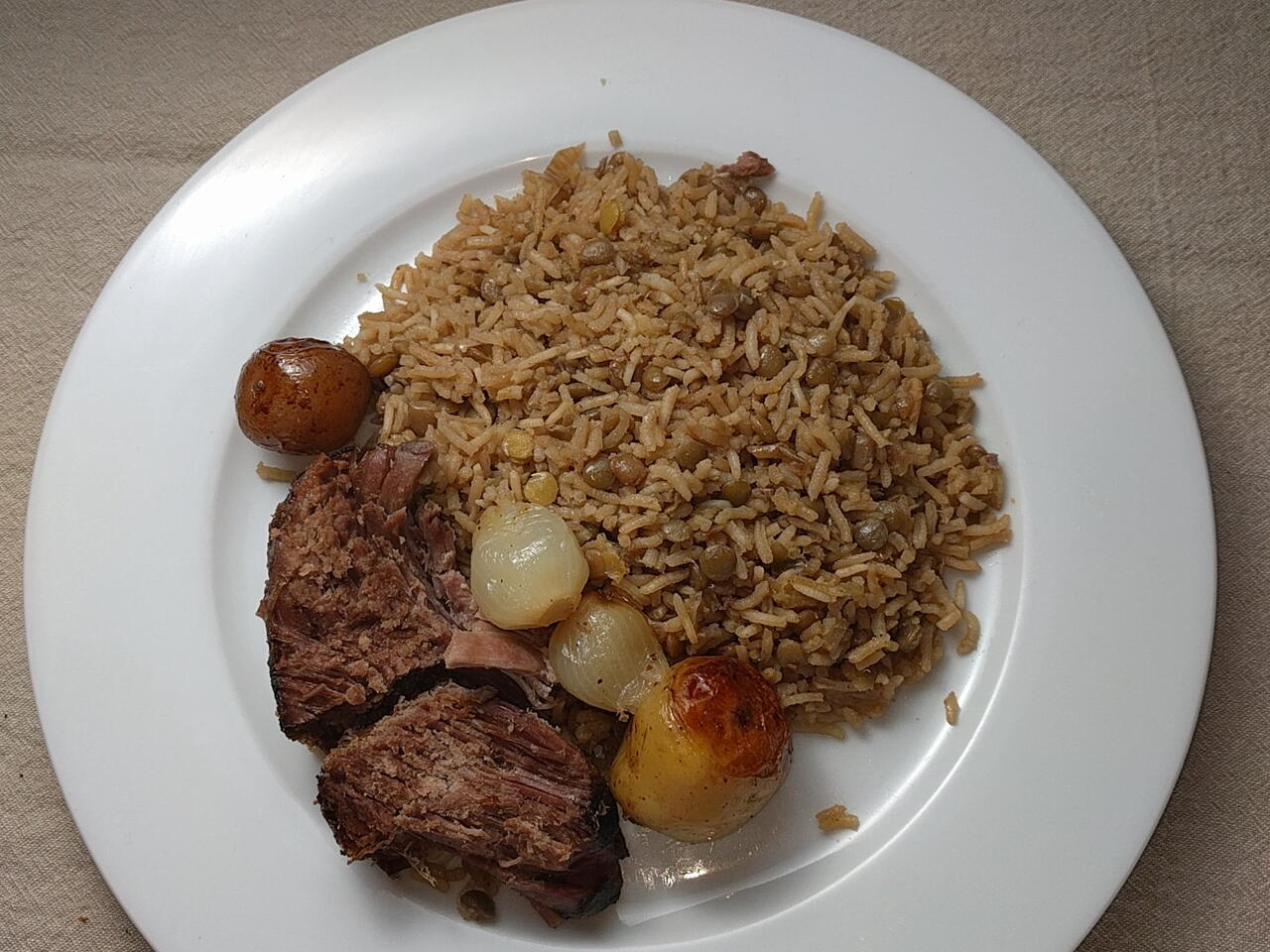 Coloque o alho deixe fritar um pouco junto com o arroz , em seguida adicione a lentilha, coloque água fervendo passando uns 2 dedos,(se necessário por mais água) e coloque por último 1 colher de sal (pode ser tempero completo);