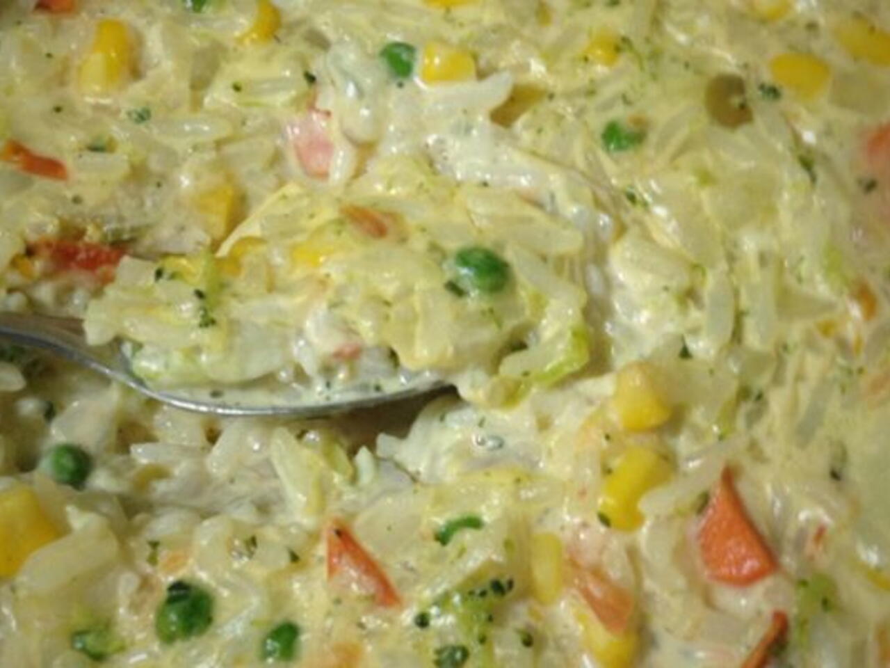 Espalhe sobre o arroz . Polvilhe o queijo parmesão e leve ao forno em temperatura média (180°C), por até 15 minutos ou até dourar.