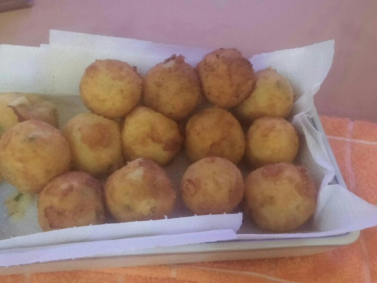 Uma dica, não deixe a bolinha fritar muito para que não estoure e vaze o queijo.