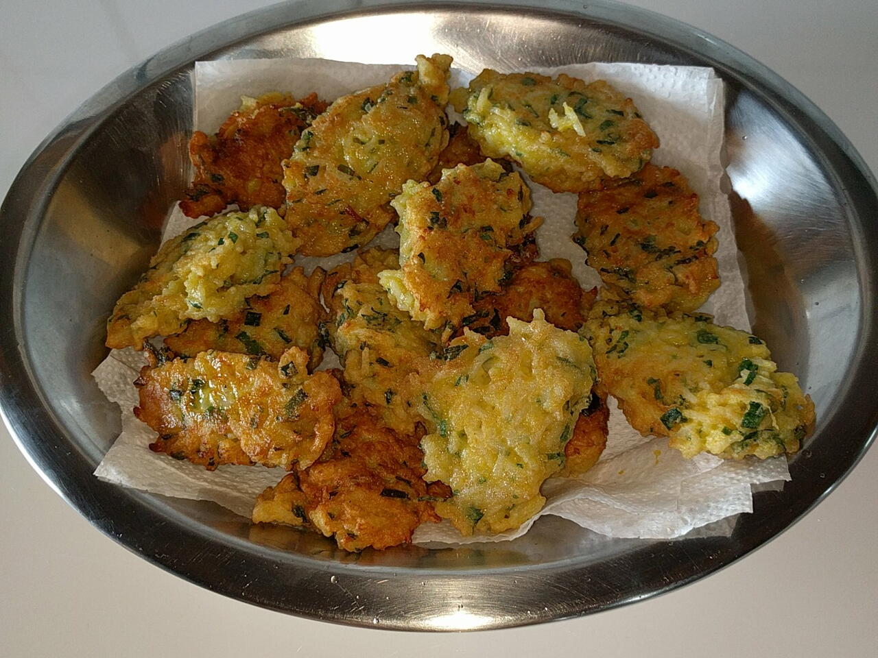 Em uma frigideira, aqueça o óleo. Frite os bolinhos. A cada colherada, passe a colher no óleo quente para que desprenda bem da colher. Frite dos dois lados, não precisa de muito óleo.