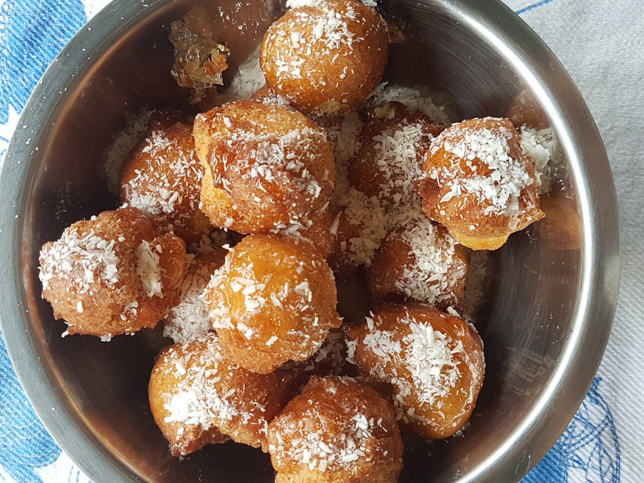 A massa fica mais pra dura ,(Mais dura que de bolo, mais mole que de pão) sove bem a massa , esquente o óleo, não muito quente, para que asse bem por dentro, ele se vira sozinho. Coma assim ou passe em uma calda de açúcar e polvilhe cocô ralado ou uma cobertura de sua preferência;