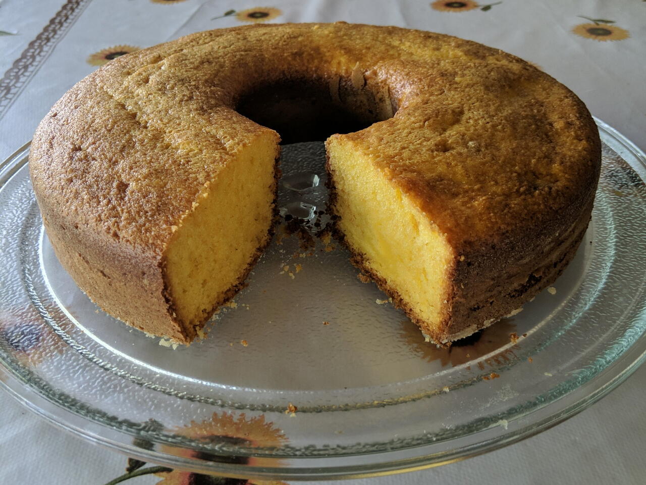 Adicionar a farinha de trigo, o fubá, desligue o liquidificador e acresente 1 colher bem cheia de fermento em pó.