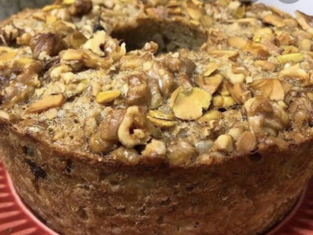 Amasse bananas, misture com o restante dos ingredientes deixando por ultimo o fermento, despeje em forma untada salpique os opcionais, leve em forno pre aquecido a 180 graus