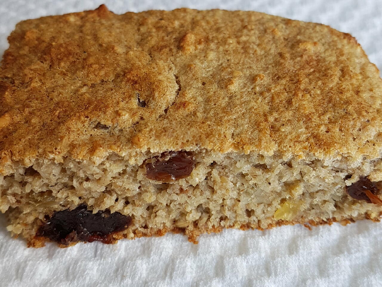 Adicione as uvas passas, as ameixas r os damascos ou o que você tiver, 1 colher rasa de fermento, untar a forma com óleo, salpique aveia e leve ao forno a 180° por 30 minutos ou até cozinhar, na dúvida espete um palito para ver se está assado..