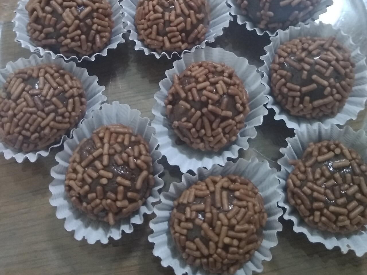 Passe margarina nas mãos para enrolar em seguida passe no chocolate granulado e estará pronto.