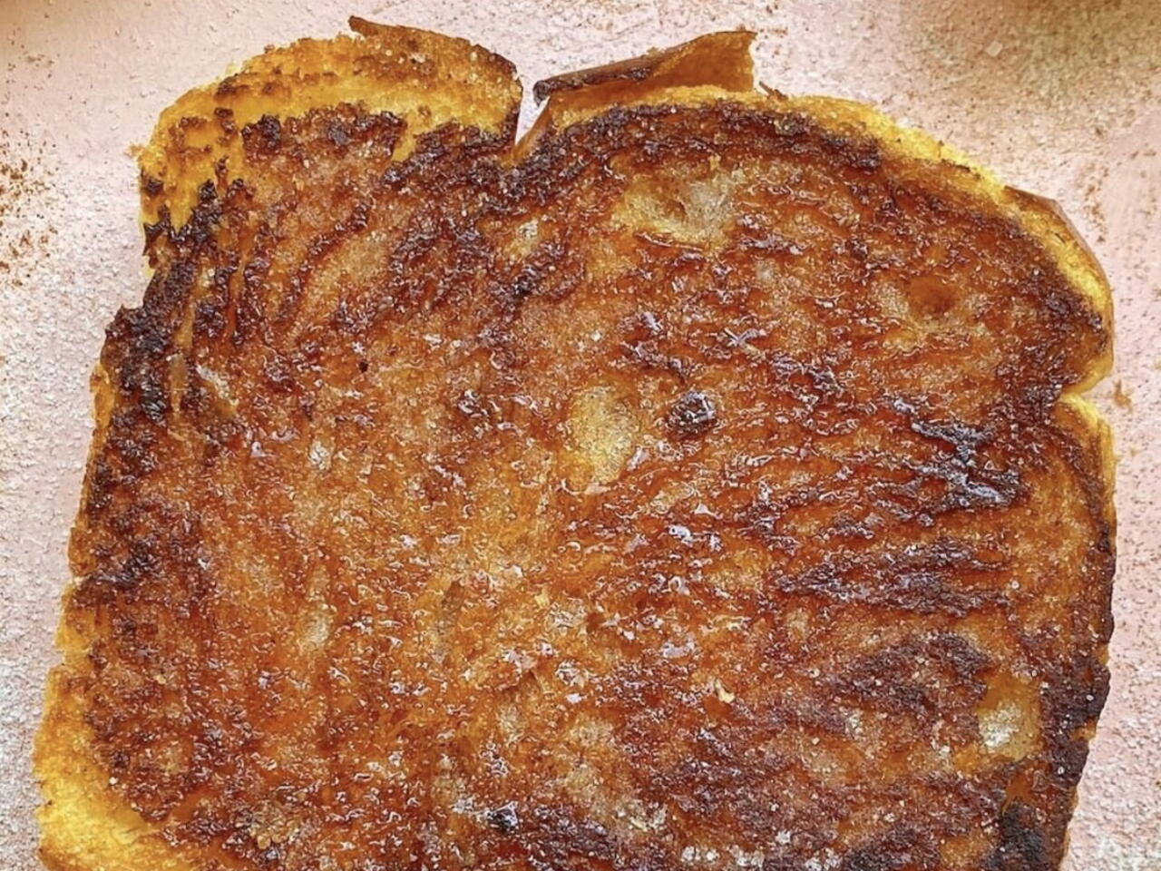 Tostar as fatias de pão dos dois lados em uma frigideira quente e servir.