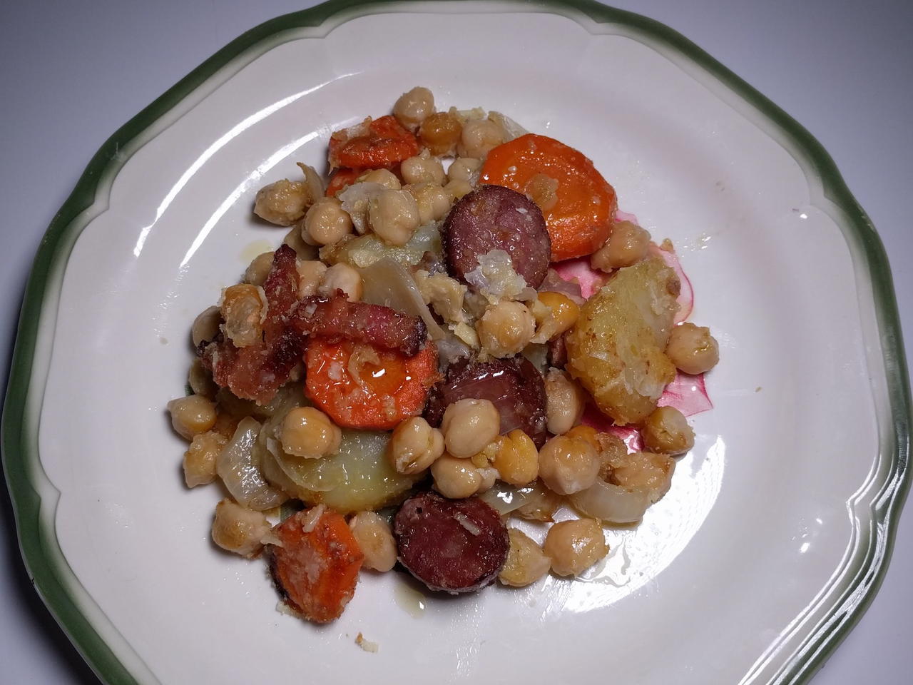 Depois de tudo frito coloque sobre o grão de bico. (Reserve)
