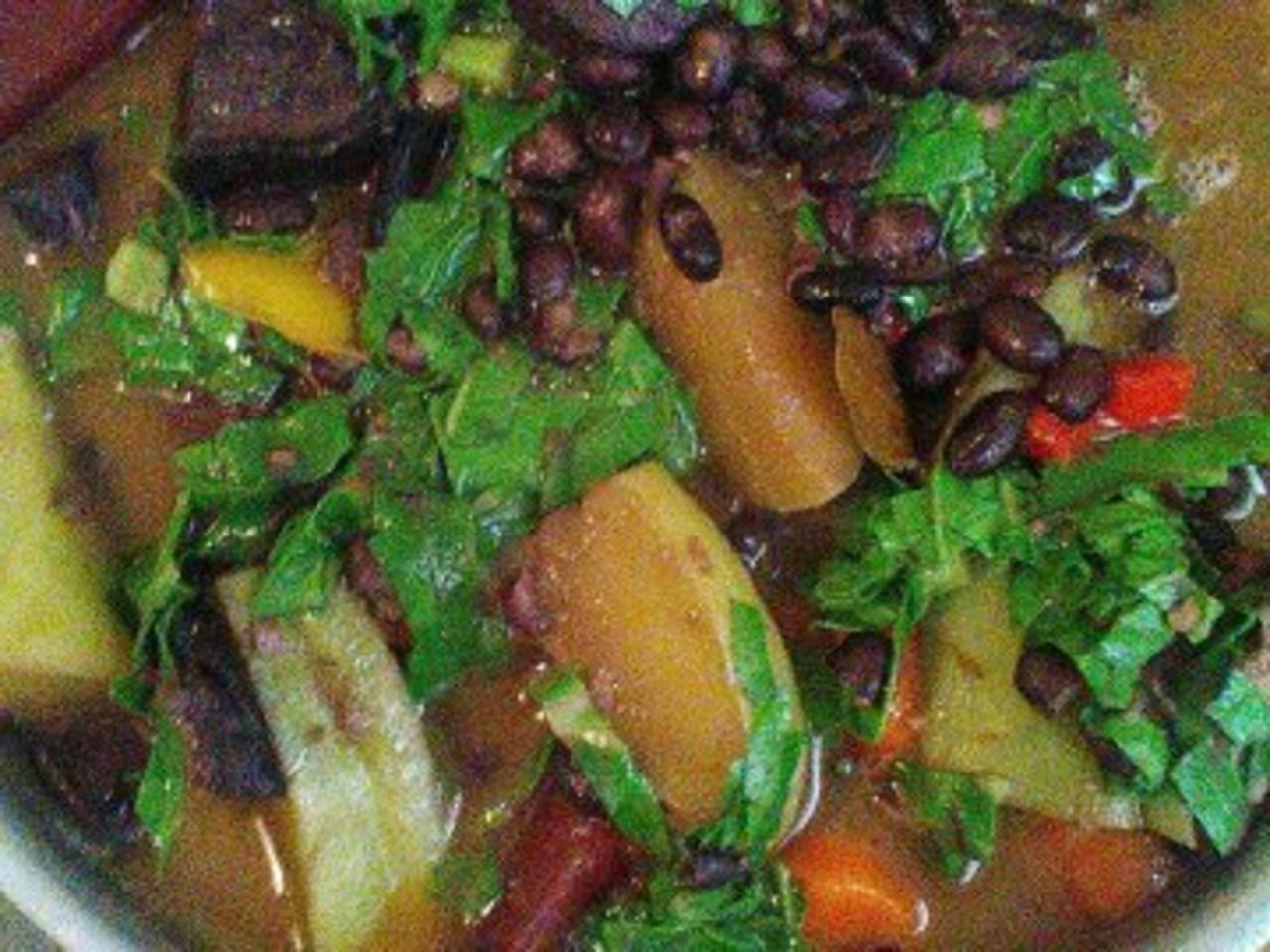 Despeje o caldo com a couve na tigeja e pronto! Feijoadinha Colorida.