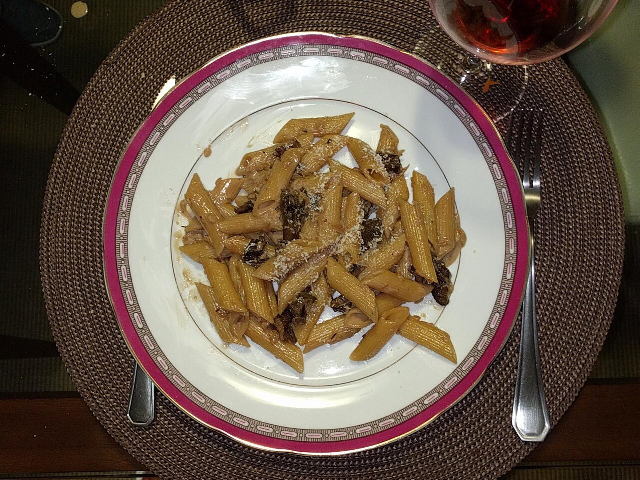 Deixe apurar um pouco, acrescente o funghi picado, a água que ficou de molho, deixe apurar, acrescente a nata ou creme de leite;