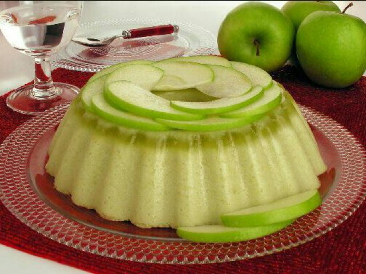 Leve à geladeira por 4 horas, desenforme e sirva decorado com fatias de maçã verde.