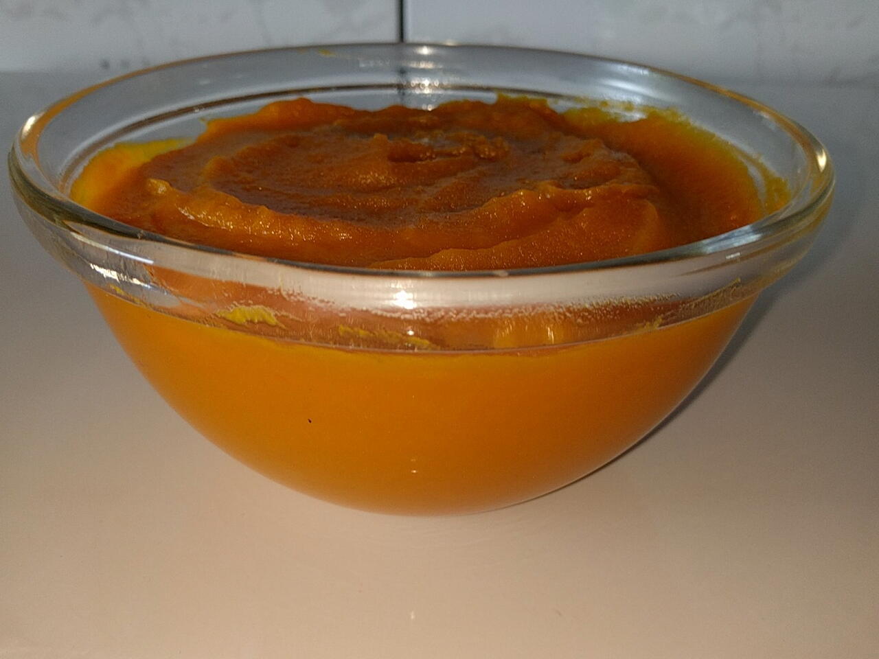 Coloque em uma panela 1 colher de manteiga e o caldo, acrescente a abóbora , deixe apurar um pouco