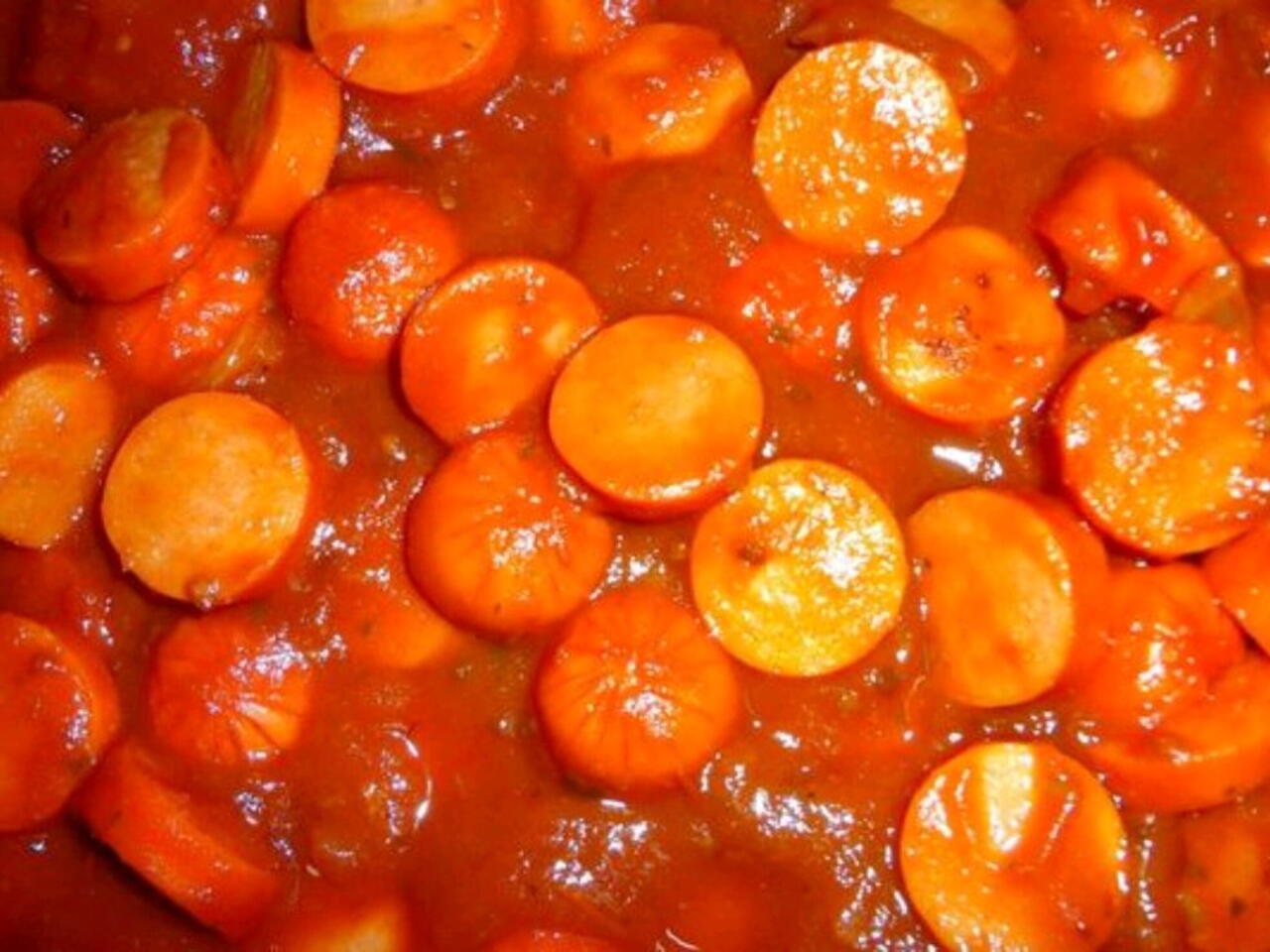 Lave as salcichas, em uma panela corte em rodelas finas ou grossas coloque o extrato de tomate e a manteiga ou a margarina, leve ao fogo e deixe cozinhar ate o molho engrossar