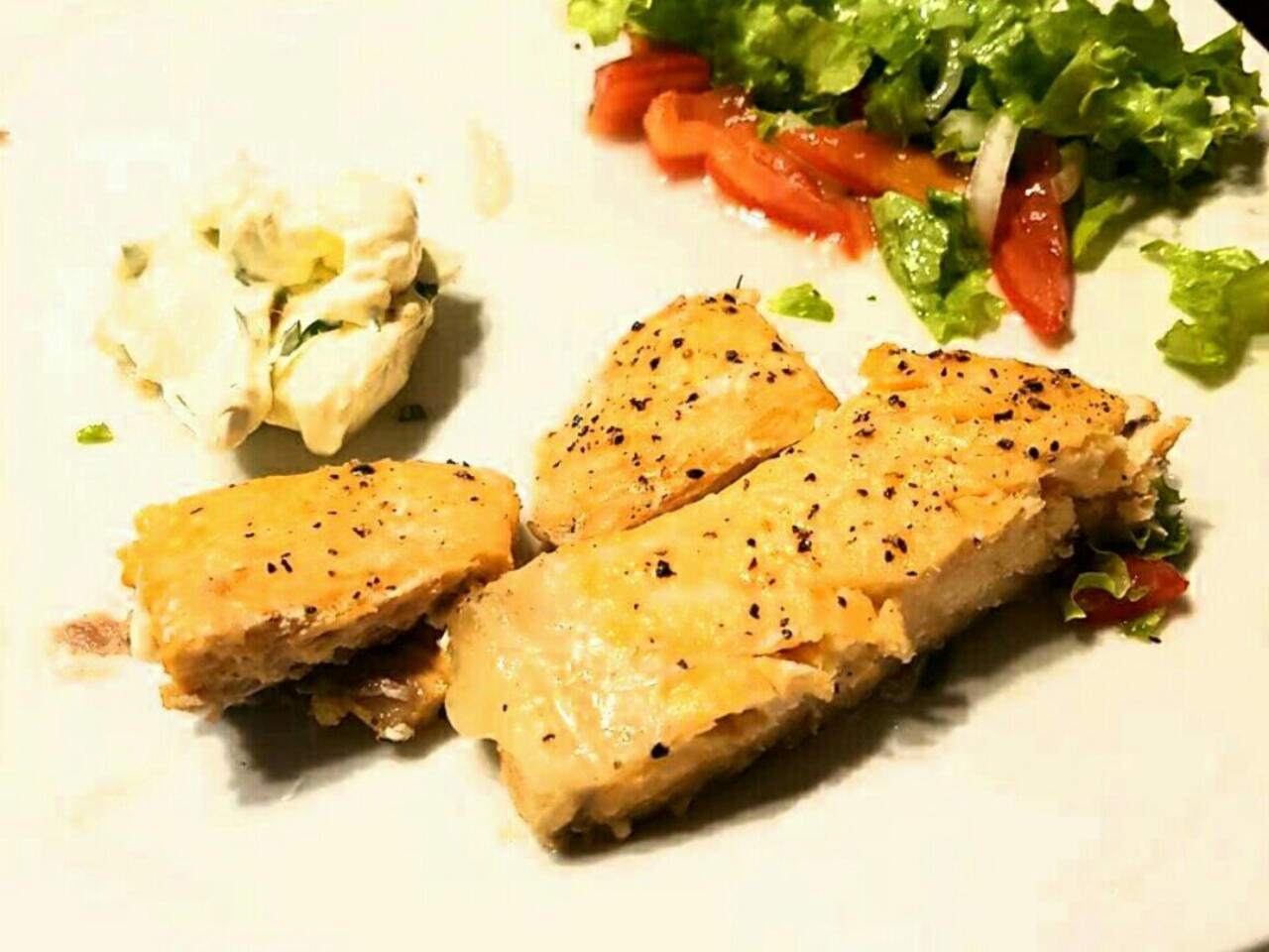 Temperar o salmão com sal, azeite e lemon pepper, assar em forno 220 graus ( cobrir com papel aluminio) durante 30 min. Misturar o suco de limão e o cream cheese em um bowl e acrescentar a salsa. Pode ser servido com salada.