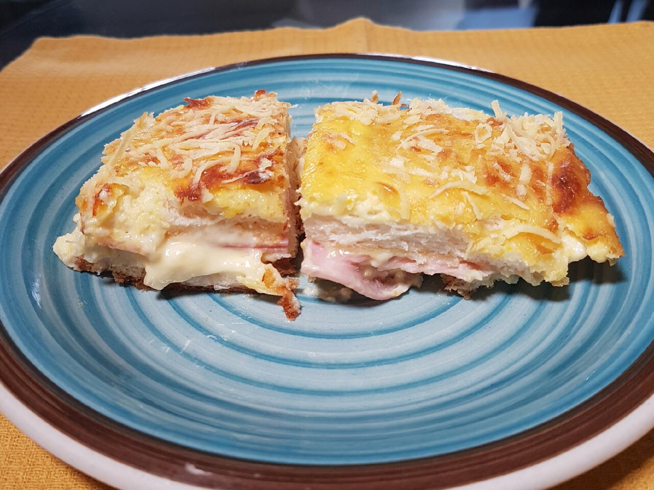 Adicione o creme e Intercalar camadas de presunto, queijo, pão e creme;