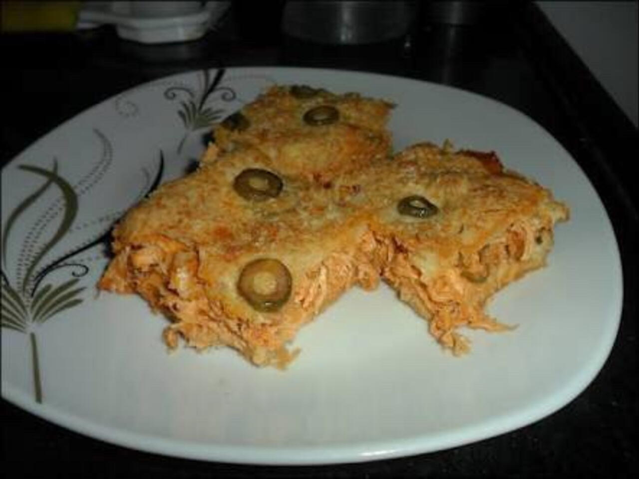 Misturar com um garfo a massa com o recheio (para não ficar pontos com massa) e depois virar o restante da massa. Novamente misturar com um garfo a massa com o recheio.