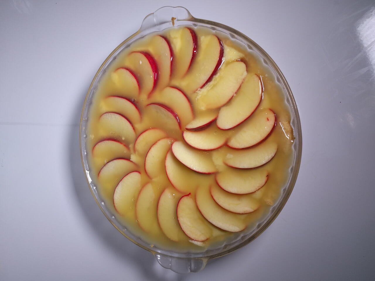 Após Massa assada, creme pronto e as maçãs cortadas (espremer limão nas maçãs para que não escureçam);