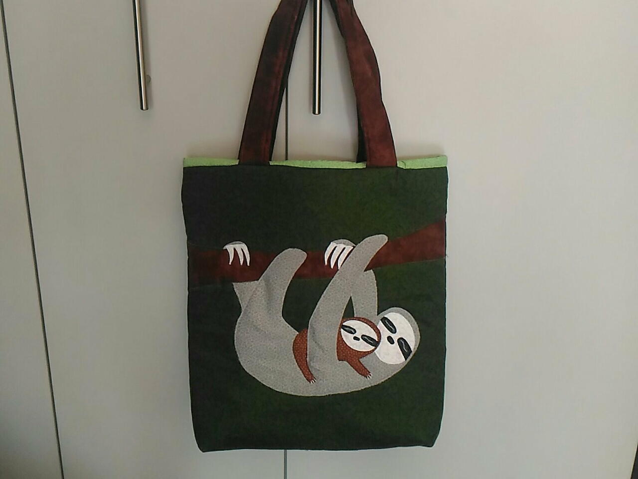 Bolsa - Modelo Tote Bag - Com Bordado de Bicho Preguiça