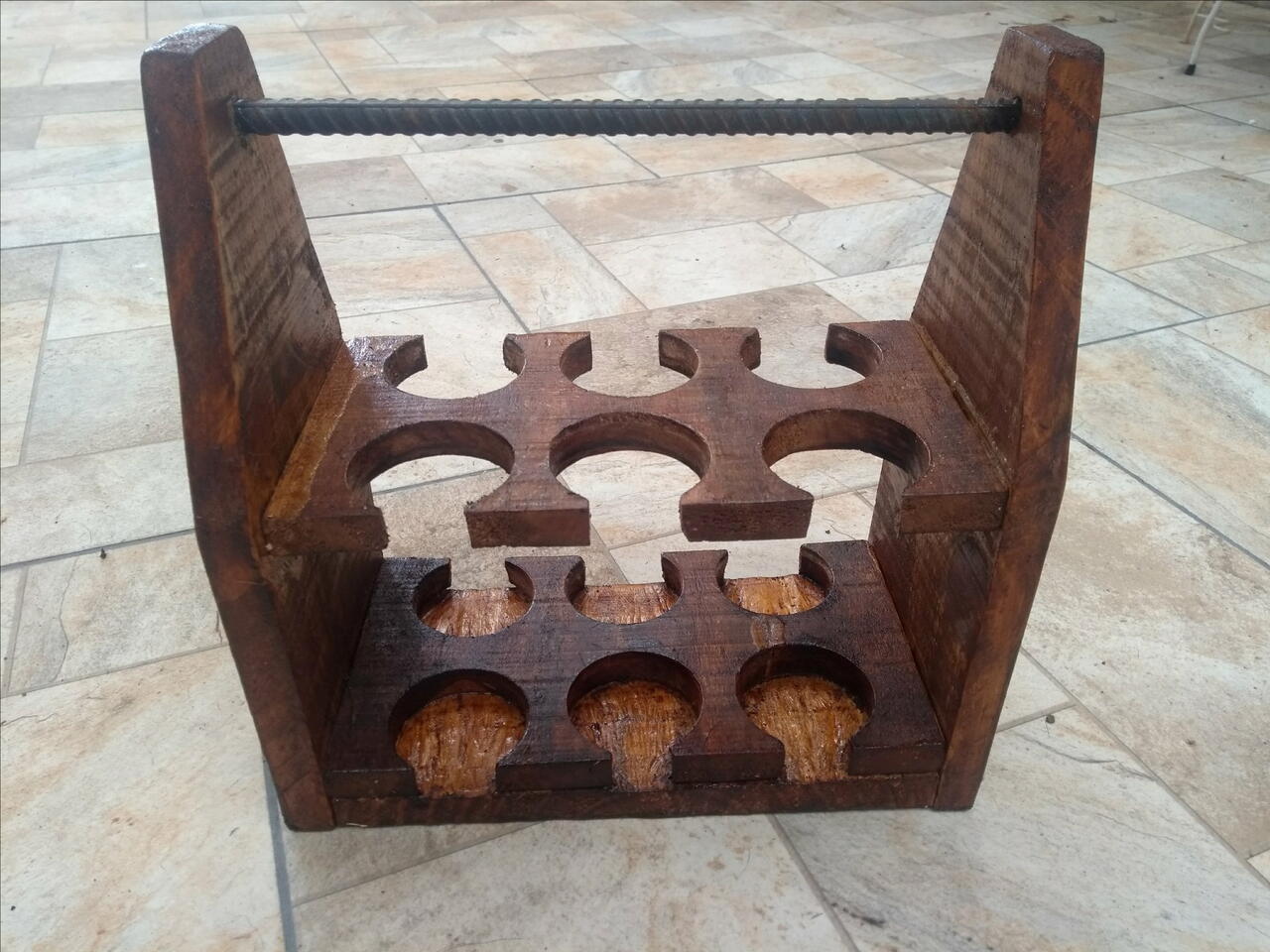 Olá, vc precisará de 3 cortes de 25x13. Um deles, você separa para ser a base e os outros dois você fará cortes com a serra copos dependendo da medida da garrafa que vc quer colocar. As partes laterais possuem 27,5x13, porém aos 15,5 cm comecei a inclinar corte dos dois lados.