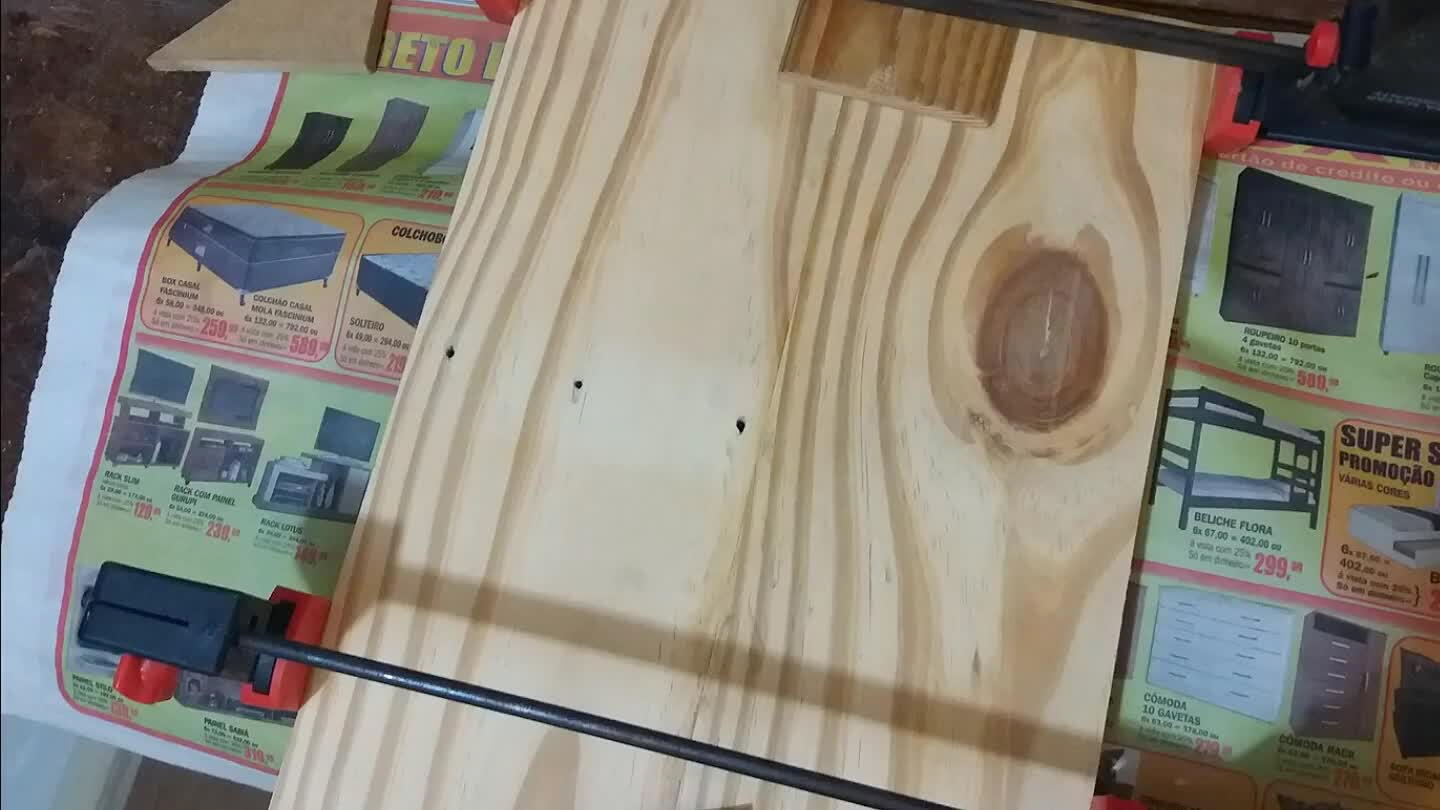 Ripas de madeira de pallet, pedaços de laminadk de piso e cola instantânea.