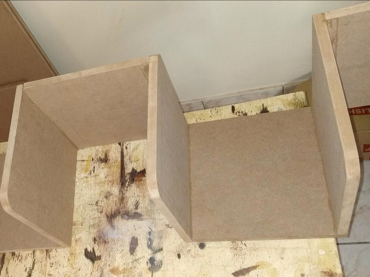 Cortar as chapas no tamanho desejado. As maiores fiz 20cmx20cm e as de cima e de baixo 20cmx10cm. Depois é só ir verificando os lados certos a serem juntados e ir parafusando. Ao final lixar as bordas (no desenho do meu projeto eu fiz quinas quadradas mas na execução eu arredondei com grosa e lixadeira).